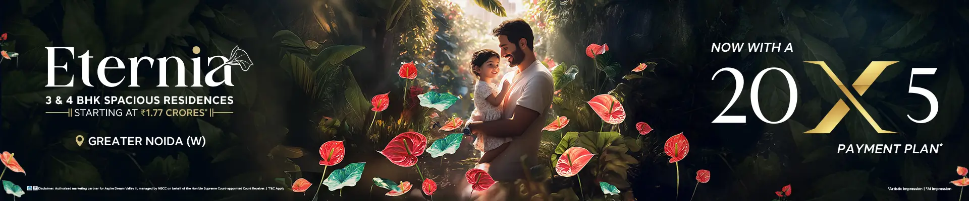 Inspired by the Anthurium flower, Eternia offers elegant living in prime Tech Zone IV, Greater Noida West. Set on a 130-meter wide road facing a lush 100-meter green belt, the 6-acre project features 6 G+30 towers with smart layouts and the signature of a global luxury brand.